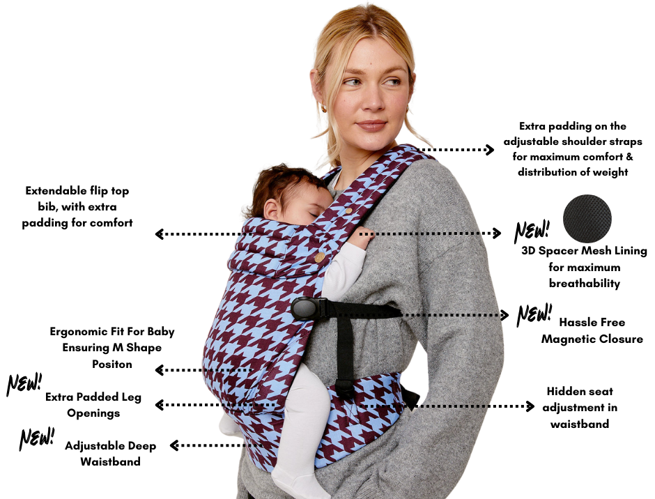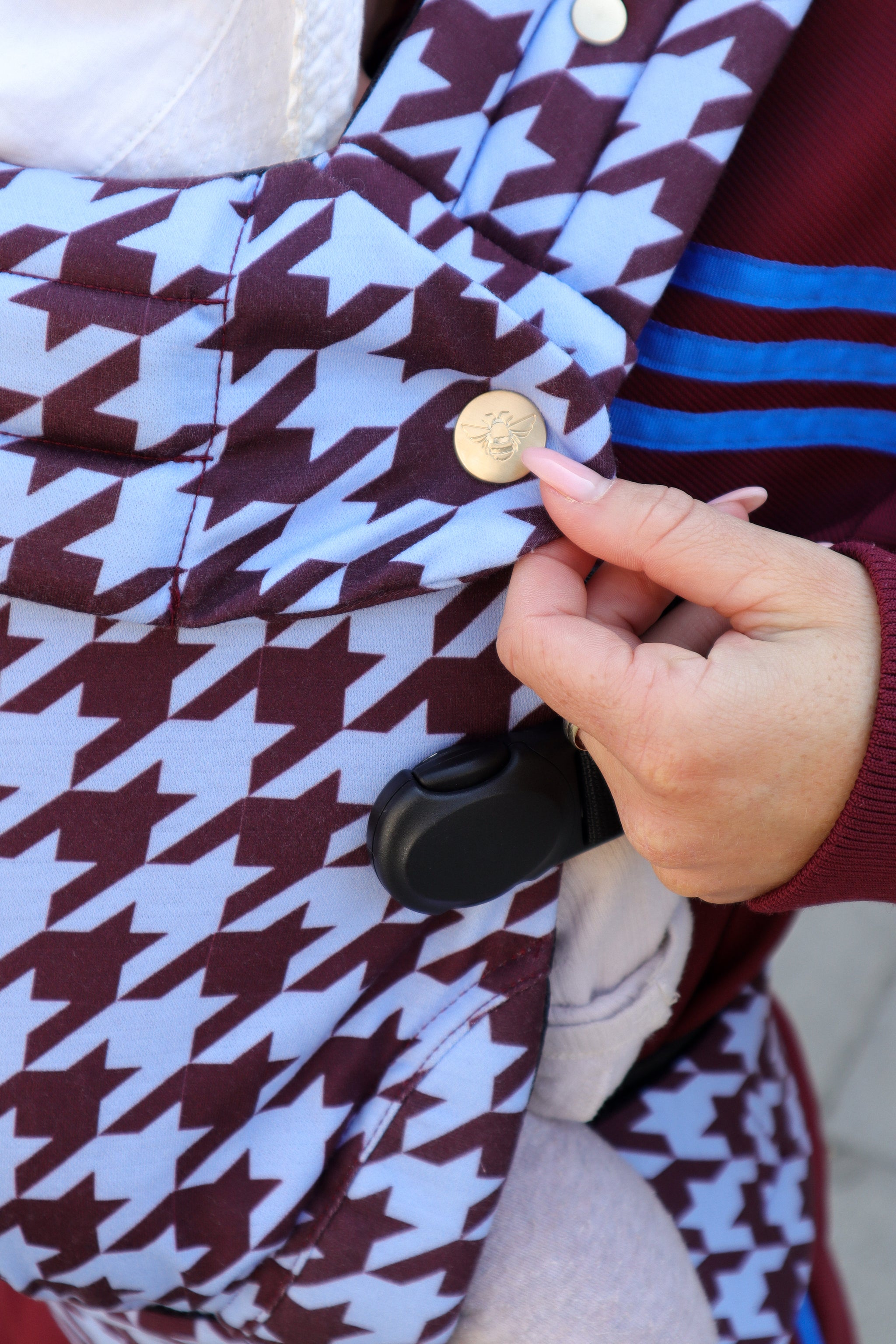 Turn everyday strolls into runway moments with the Nomad Air Harlow – a fresh take on a classic style. Featuring a bold, oversized houndstooth print in a striking lavender-blue palette, this baby carrier is made for parents who love timeless fashion with a modern twist.