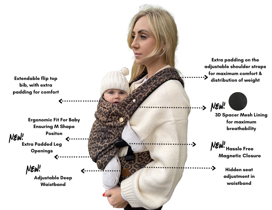 Where style meets comfort. Designed for modern parents who love a touch of wild elegance, this carrier features a chic animal print inspired by the beauty of the savannah.