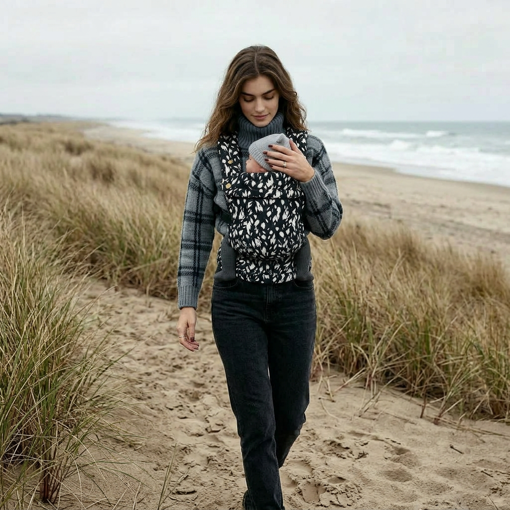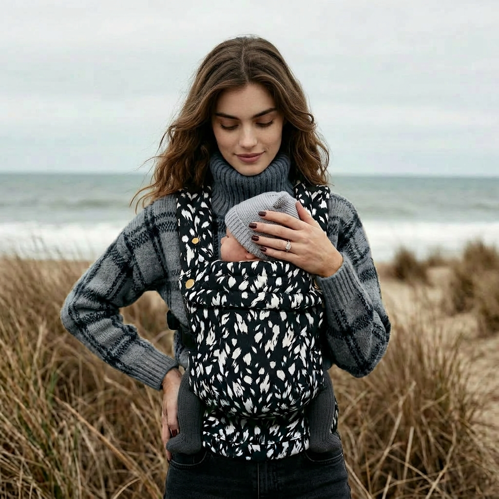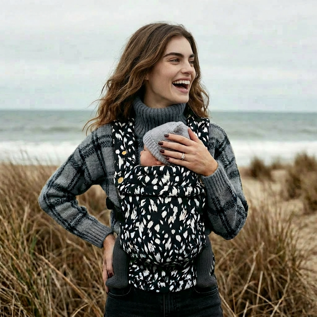 Clean, cool, and effortlessly bold. A striking monochrome design that goes with everything, built for comfort and everyday ease. Supportive, simple to wear, and seriously stylish- baby wearing, stripped back but standout.